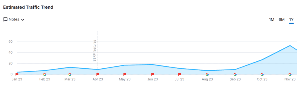 It was published in August 2023 and started ranking right away: