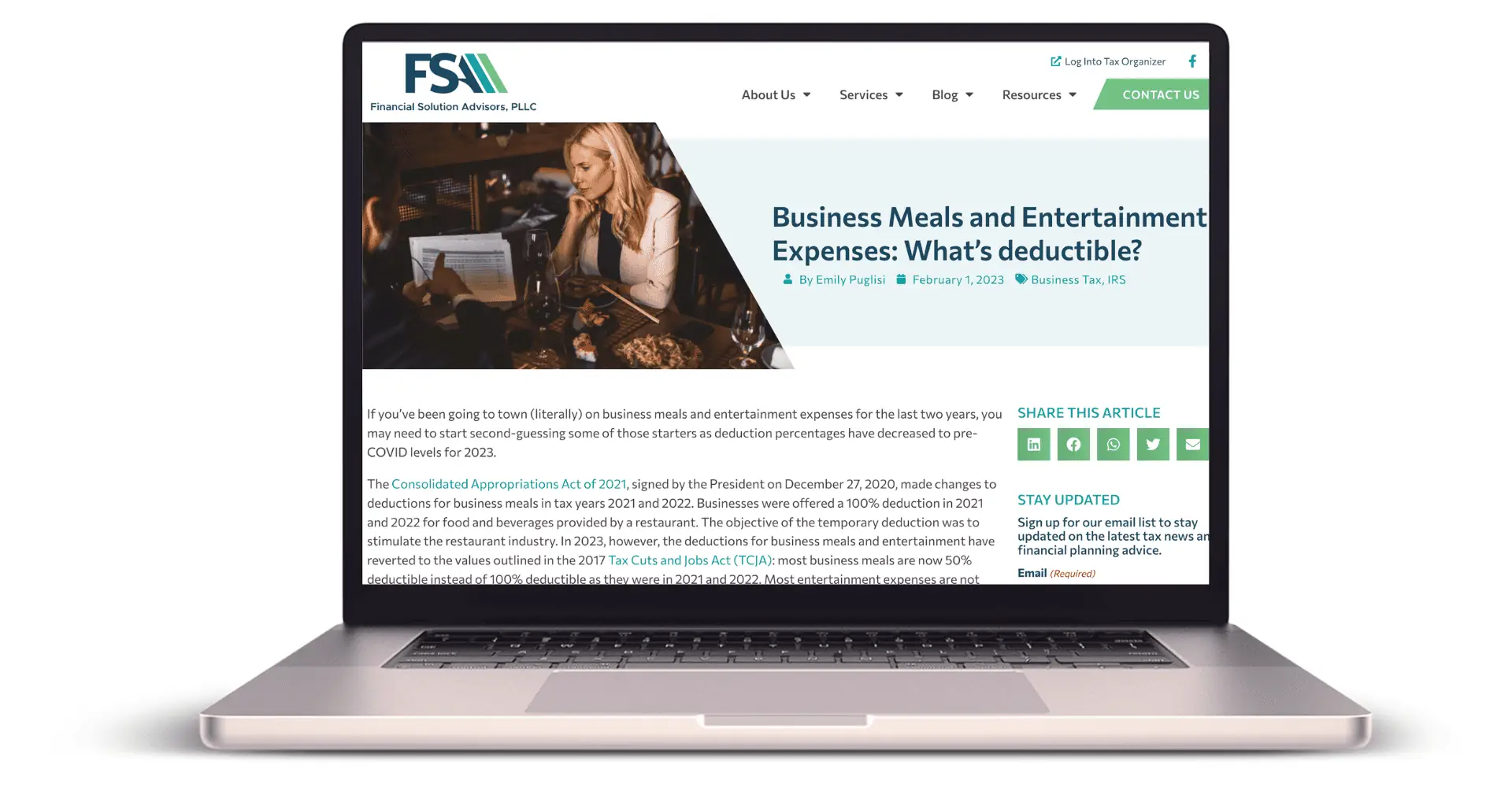 For example, one of our client’s blogs on deductible business meals and entertainment expenses has consistently performed well organically because it answers crucial questions that many people ask, such as: